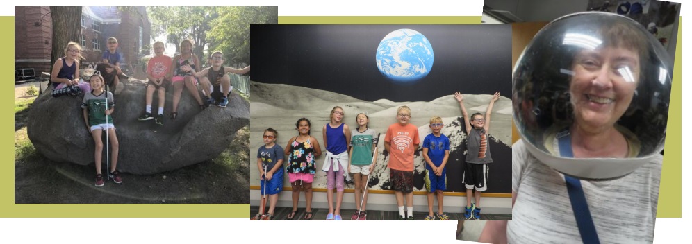 The students showed off their creative side by making rockets and robots out of recyclables. They received instruction in O & M while venturing around campus for a Space Studies tour at UND and a field trip to Triple M Stables for horseback riding and interactions with other animals. Independent Living Skills were used while preparing their own snacks and while prepping food for our parent program. Compensatory Skills were part of writing thank-you’s to various organizations and during reading activities. Recreation and Leisure was covered along with Sensory Efficiency skills during our trip to the splash park and the ND Museum of Art to listen to the performers, Kwaician Traylor, who sounded similar to Ed Sheeran and Begonia who had a vibe like Adele. Assistive Technology skills were used while the students listened to stories on a talking book machine and while working on creative activities. Career Education took place during our tour of the Space Studies program at UND and while reading stories about astronauts and learning about what education is required to become an astronaut. And of course, Social Skills and Self-Determination skills were covered in our Social Skills class where the students partook in a role-playing game and were also worked on throughout our program!